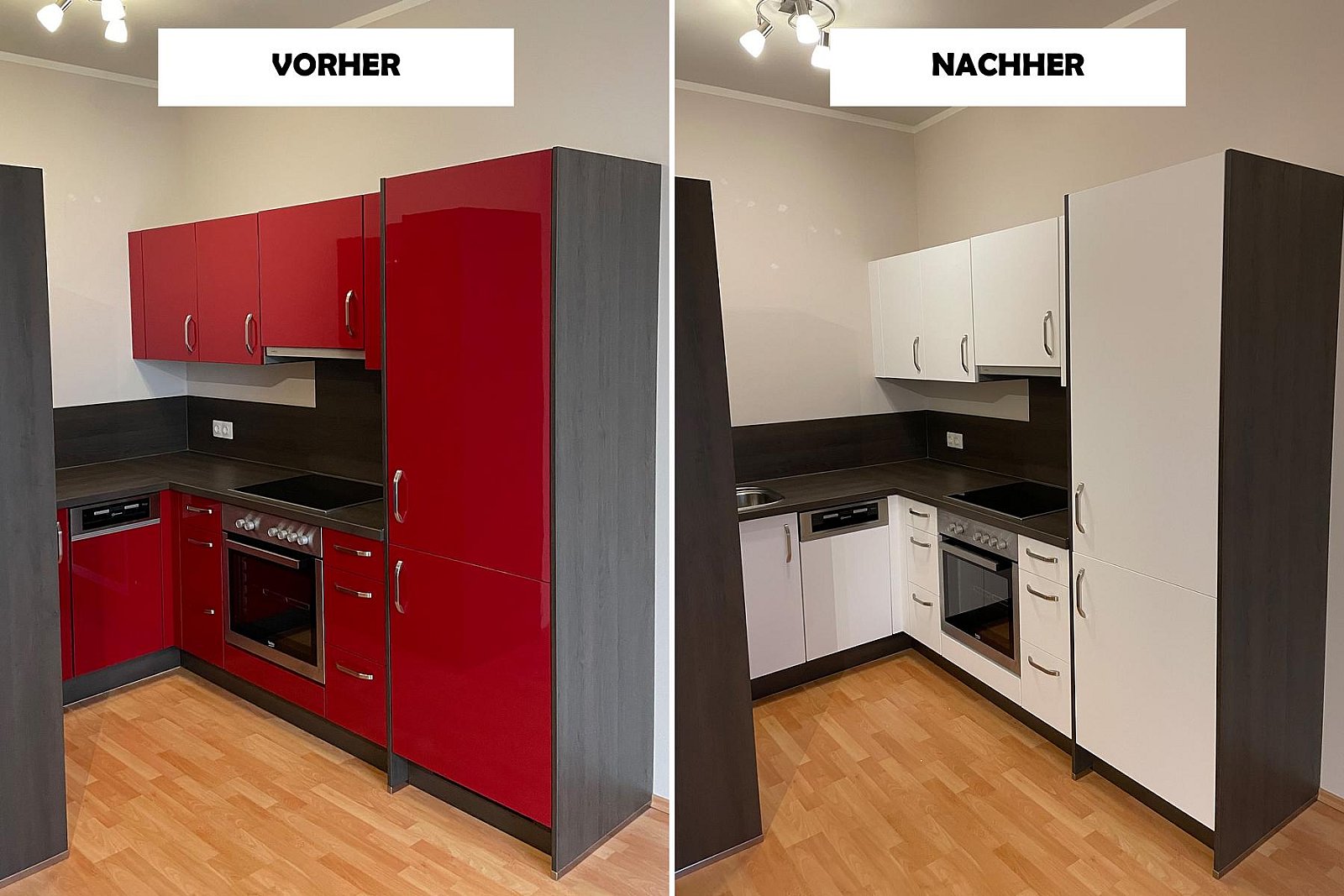 Fotos von Küchen, welche wir modernisiert haben. Teilweise war die Werksfolie defekt und oftmals möchte man einfach eine neue Optik!